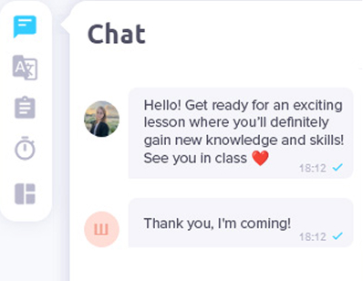 • Общение с преподавателем через чат